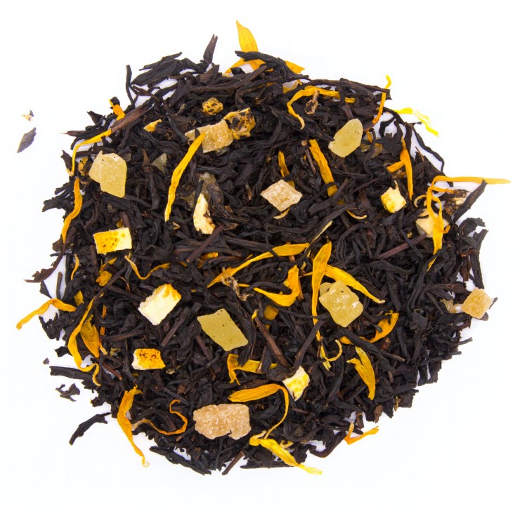 Этот черный чай с кусочками ананаса, лимона и апельсина, лепестками подсолнечника имеет имеет знакомый с детства вкус и аромат лимонного бисквита со сладкой тягучей белой глазурью. Улучшает настроение и помогает расслабиться.